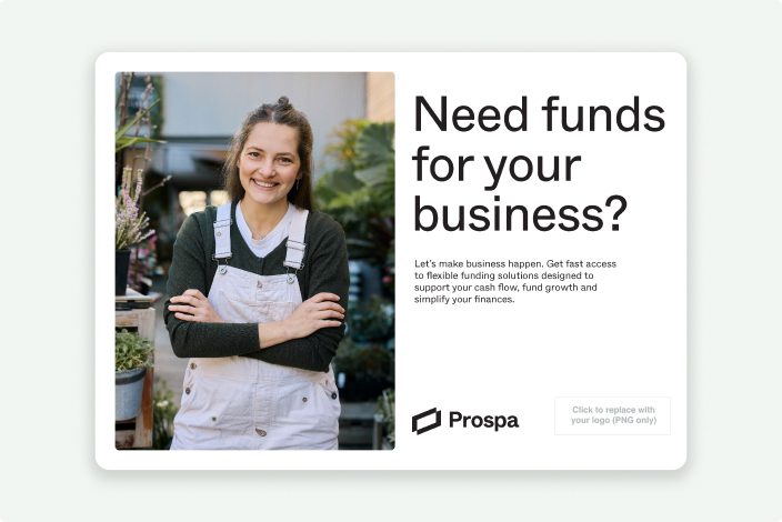 This is a simple explanation of Prospa’s small business funding options. You can customise the flyer with your logo and contact details then print it or send it via email.