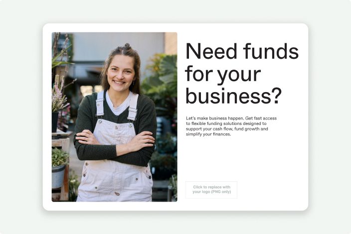 This business funding brochure is Prospa branded with customisable sections to add your your own logo and contact details. Use it online or print it out.
